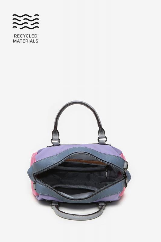 Bandolera de mujer elaborada en materiales reciclados y sostenibles. Un diseño muy funcional que combina diferentes tonalidades de color frescas y estivales. Perfecta para llevar tus imprescindibles del día a día.• Elaborada en materiales reciclados.• Cierre superior con cremallera.• Su asa bandolera puede regularse y es de quita y pon.• Cuenta con diversos compartimentos interiores organizadores.• Bolsillo exterior con cremallera.• Forro interior.• Sobre la solapa de su bolsillo frontal, lleva sutilmente grabado el logo de la marca.