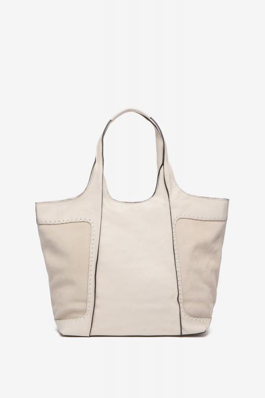 Bolso shopper grande de mujer elaborado en piel Premium. Un diseño novedoso en nuestro catálogo que destaca por la combinación de piel y ante. Su piel, ultra fluida y suave se tiñe en colores fácilmente combinables, de estilo atemporal. Sus principales características son:• Elaborado en piel Premium combinada.• Forro interior.• Su interior se distribuye en diferentes compartimentos organizadores.• Dispone de cierre superior con cremallera.• En su frontal, muy sutilmente, podemos apreciar grabado el logotipo Abbacino.